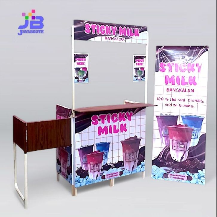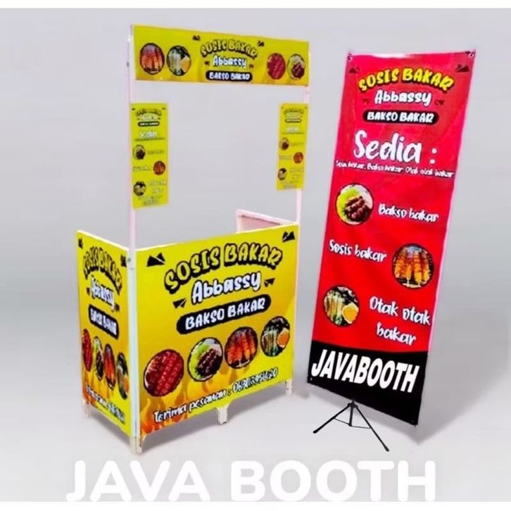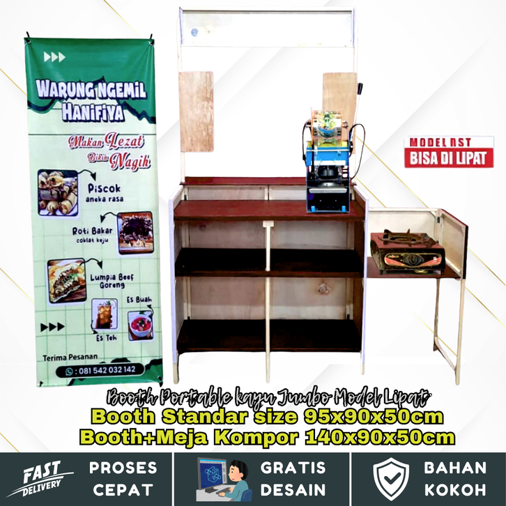Booth Portable Kayu Jualan / Gerobak Lipat / Meja Lipat / Standar / Meja Kompor / Bonus Rak Depan Bahan Aluminium Es Teh