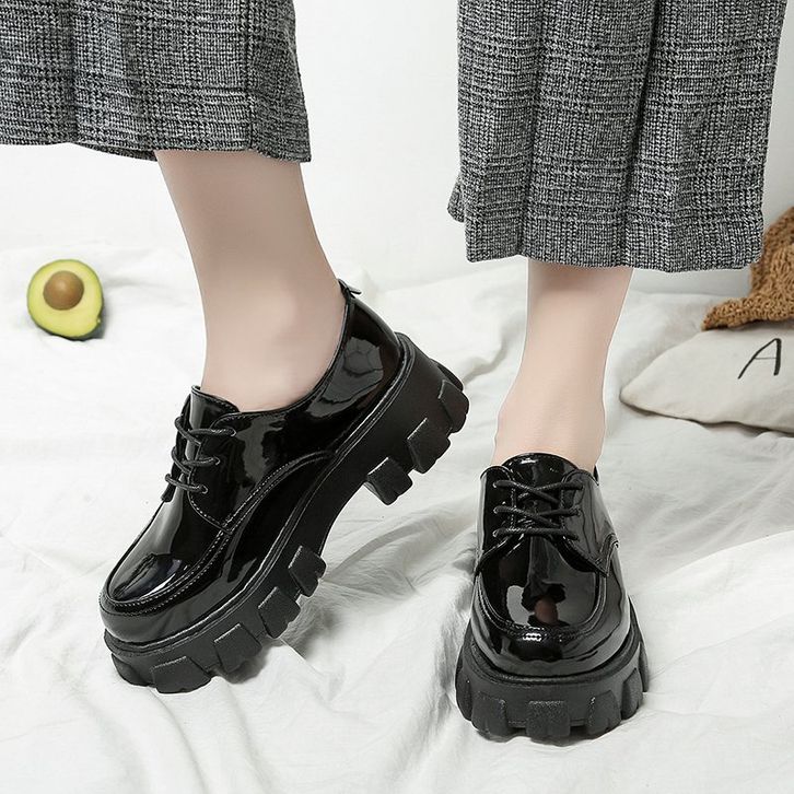 Sepatu Oxford Derby Hak Tinggi Wanita Platform Shoes Heels Import Kulit Hitam Black Flatform Sneakers