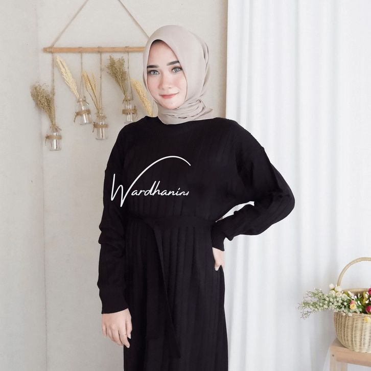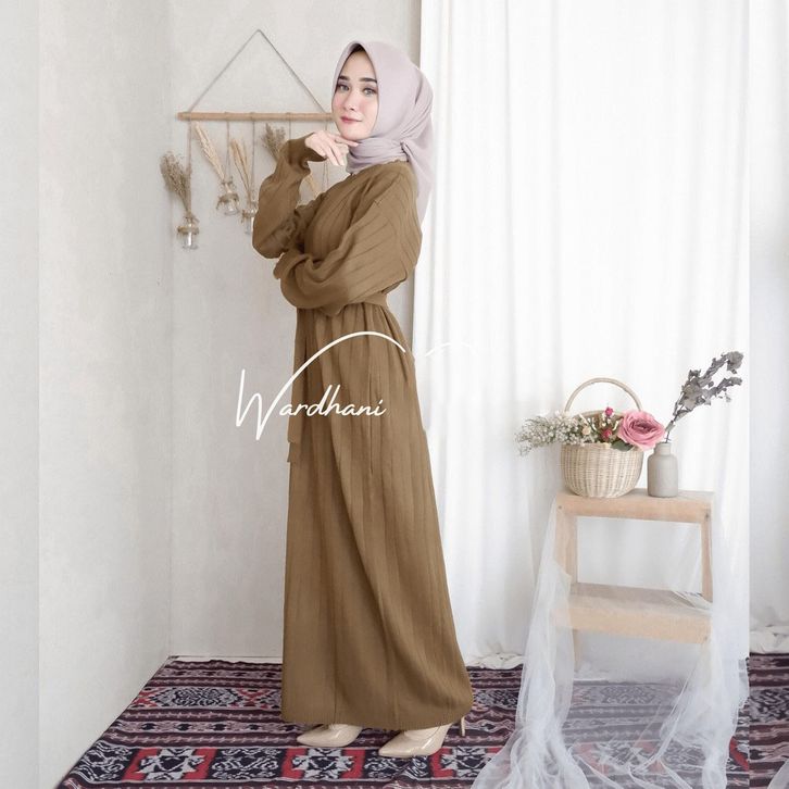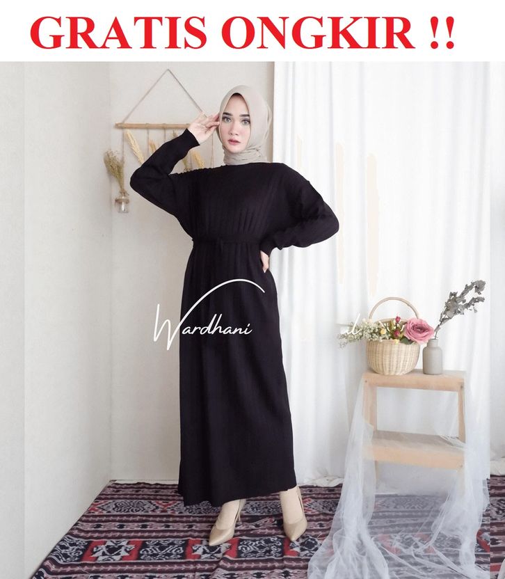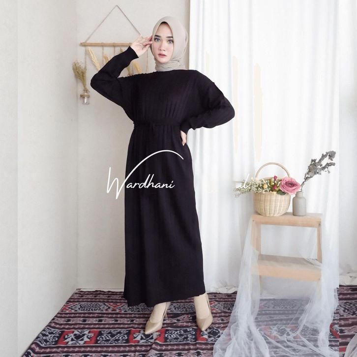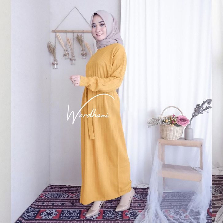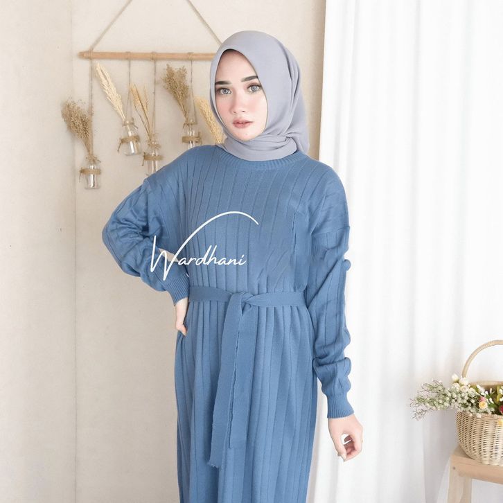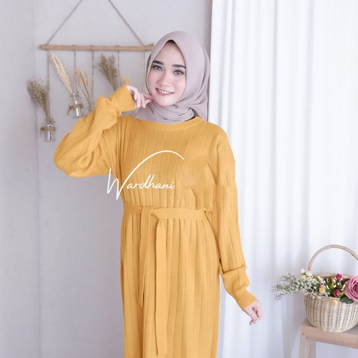 Wardhani Gamis Rajut Wanita Terbaru Premium Jumbo Dress Knit Panjang Free Belt All Size Bahan Halus Lembut