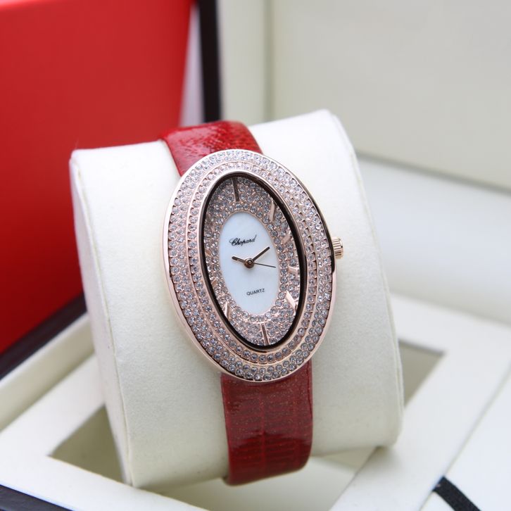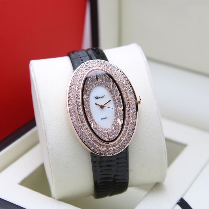 Jam Tangan Wanita Chopard / Chopard Cewek Full Mata2 CP 1085 - Tali Kulit - Jam Tangan Murah