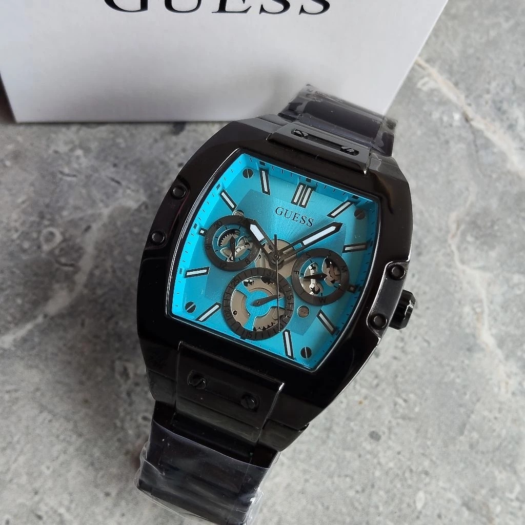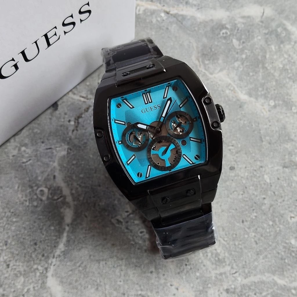 JAM TANGAN PRIA GUESS PHOENIX BLACK ICE BLUE STAINLESS STEEL GARANSI 1 TAHUN FREE BOX ORIGINAL