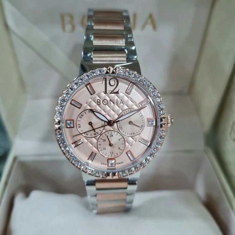 JAM TANGAN WANITA BONIA BNB 10433 SILVER COMBI ROSEGOLD DIAL ROSEGOLD STAINLESS STEEL FREE BOX FREE ONGKIR