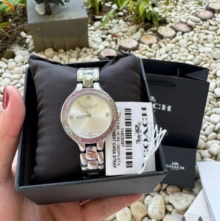 JAM TANGAN WANITA COACH 14503097 SILVER RING RAINBOW STAINLESS STEEL FREE BOX FREE ONGKIR