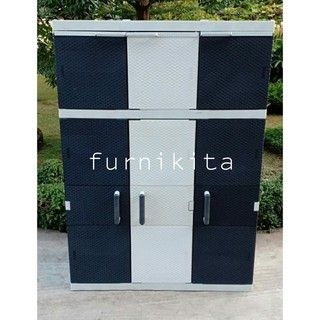 LEMARI PAKAIAN PLASTIK JUMBO AKAKO GANTUNG 3 SUSUN 12 PINTU ELMO A3G14