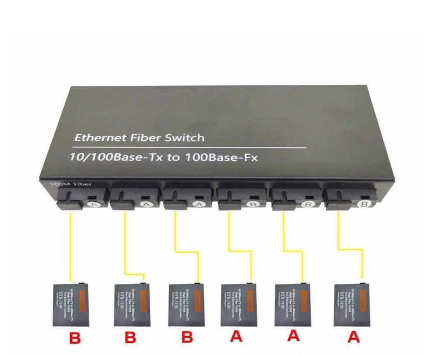 Media Converter 6 Port FO Switch Fiber Optic 6 Port SC 100 Mbps