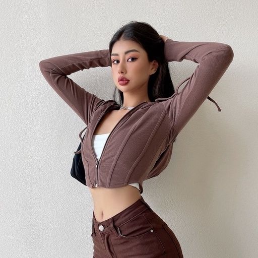 JAKET WANITA CROP TOP BAJU ATASAN WANITA DRAWSTRING FULL ZIP HOODIE SWEATSHIRT 7444