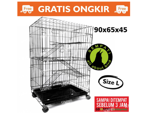 DM - KANDANG KUCING 3 TINGKAT TERMURAH SIZE L TINGKAT 3 90X60X45 + RODA + TATAKAN BESI SUPER TEBAL KCG3L