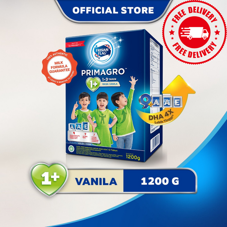 Gratis ongkir Frisian Flag susu bendera Primagro 1+ Vanilla 1200 gr (1-3 tahun) Susu Formula Pertumbuhan Anak - 1 Pcs