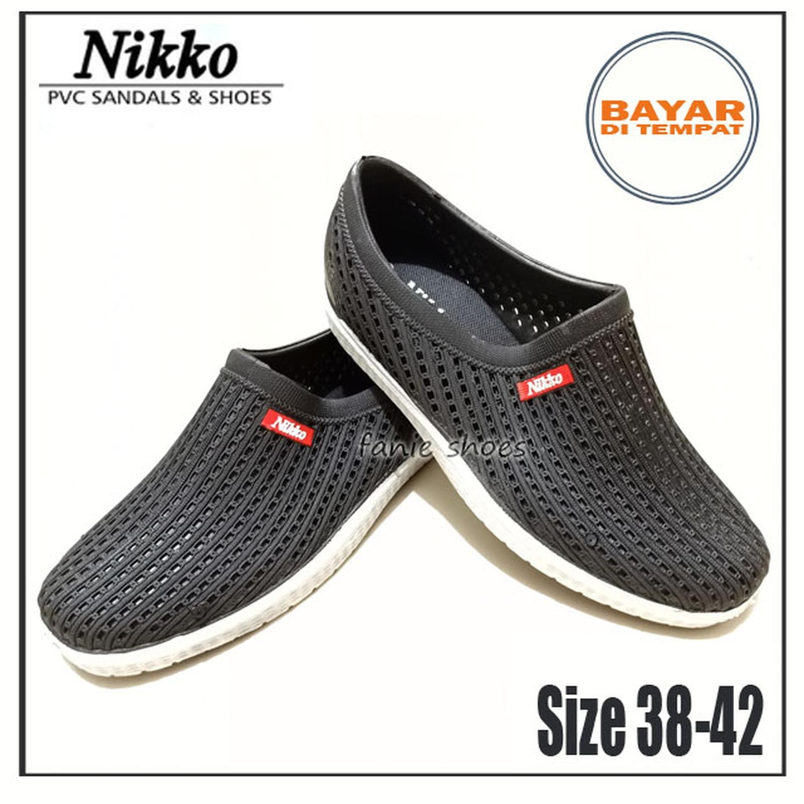 Nikko 8152 Size 38-43 Sepatu Hitam Pria Karet Slip On Tahan Air - Hitam, 38