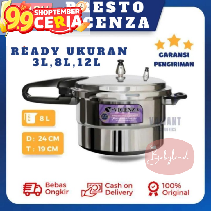 (FREE ONGKIR) Panci Presto Presto Vicenza 8 Liter V 324 HITAM / Presto daging cepat empuk / Panci Presto 8L murah