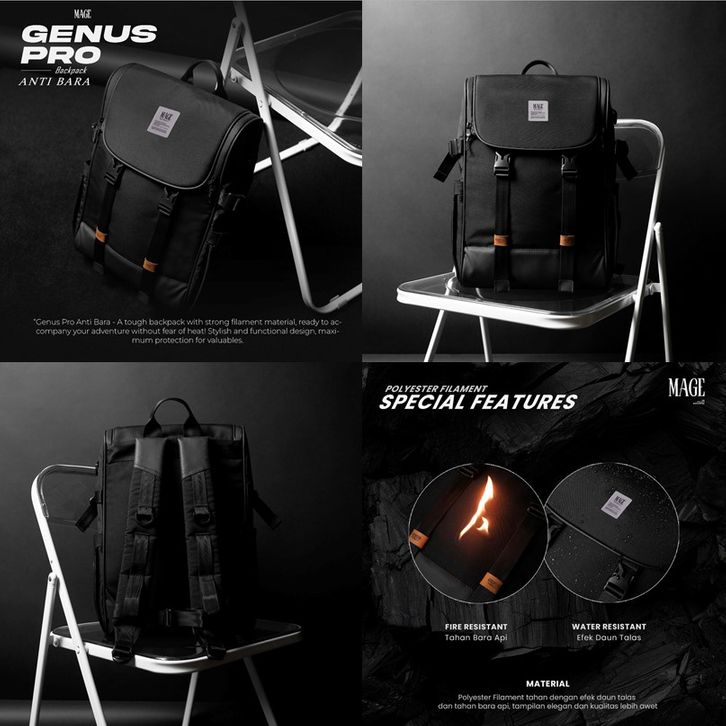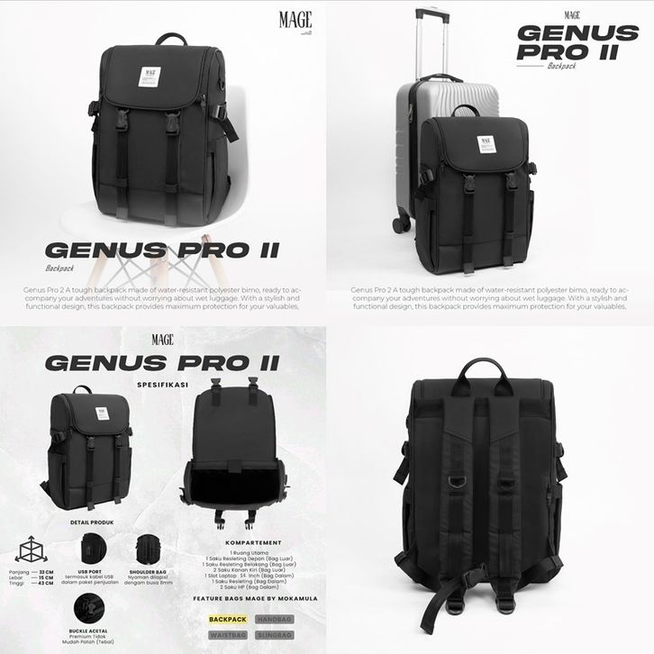 Tas Ransel Pria Mage Genus Pro 2 Backpack Tas Ransel Laptop Waterproof Tas Gendong Pria Wanita Backpack Pria Tas Kerja