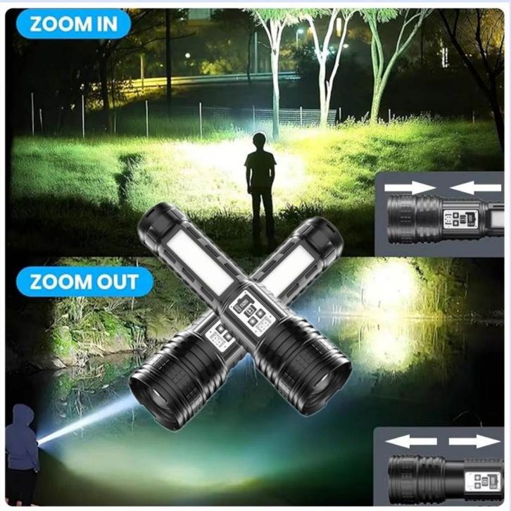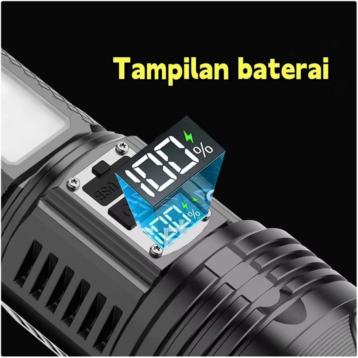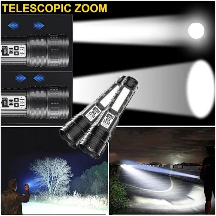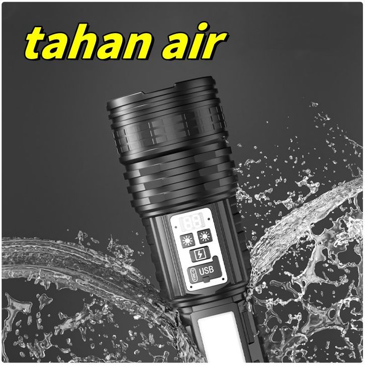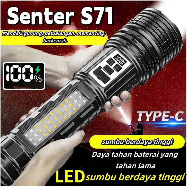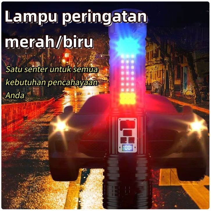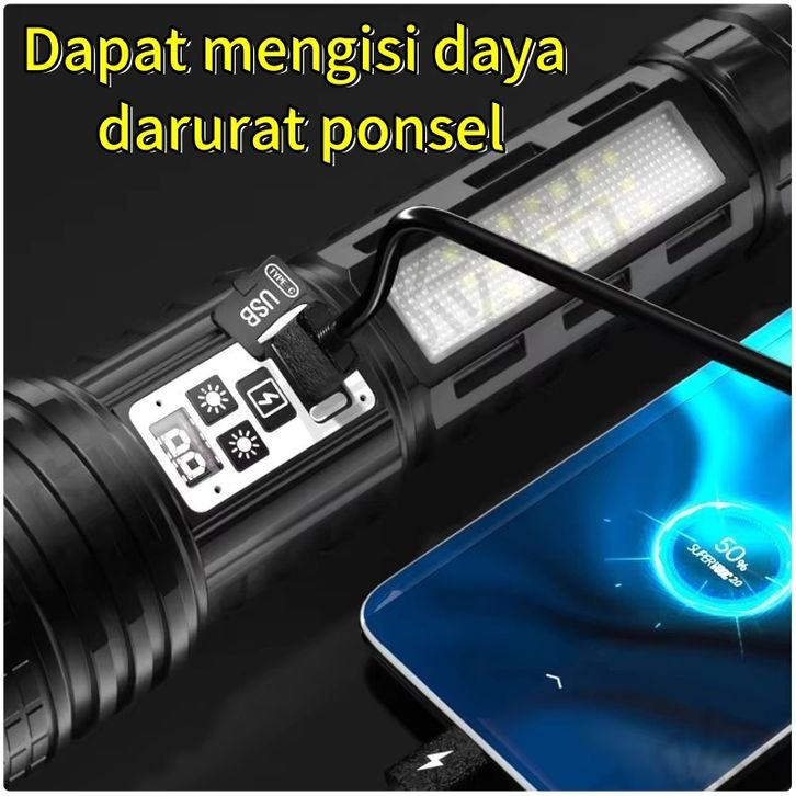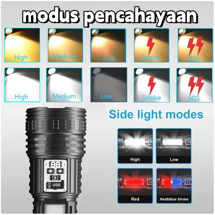 Senter LED Super Terang Dua Warna Tahan Lama 100000 Lumens Senter Tahan Air 14 Light Mode Senter Zoom Type C