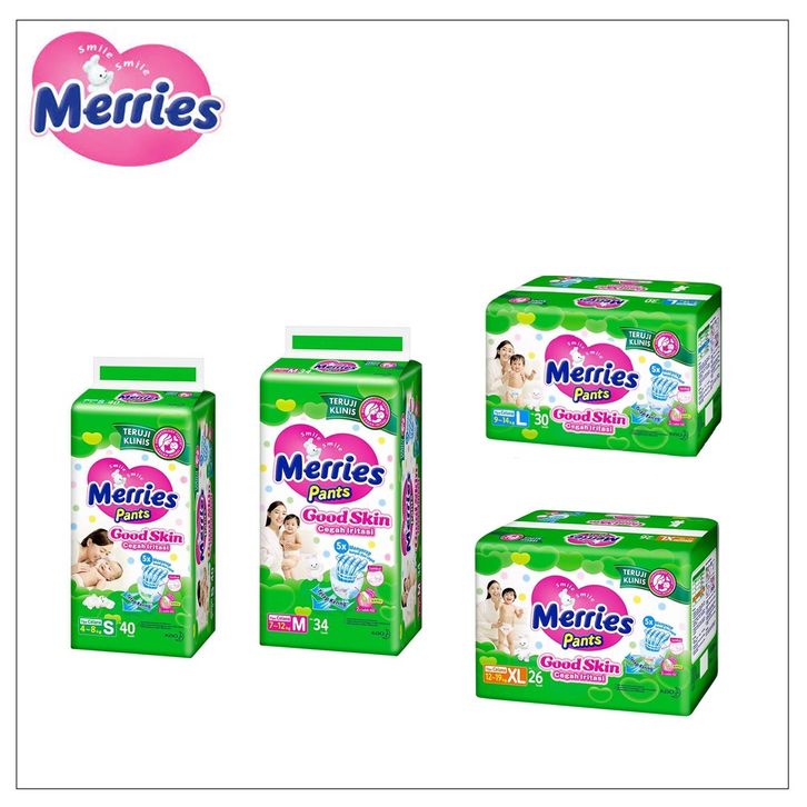 Diapers Merries Pants Good Skin Popok Bayi Sekali Pakai M34 L30 XL26