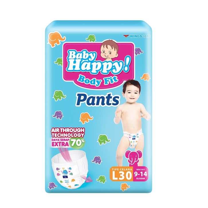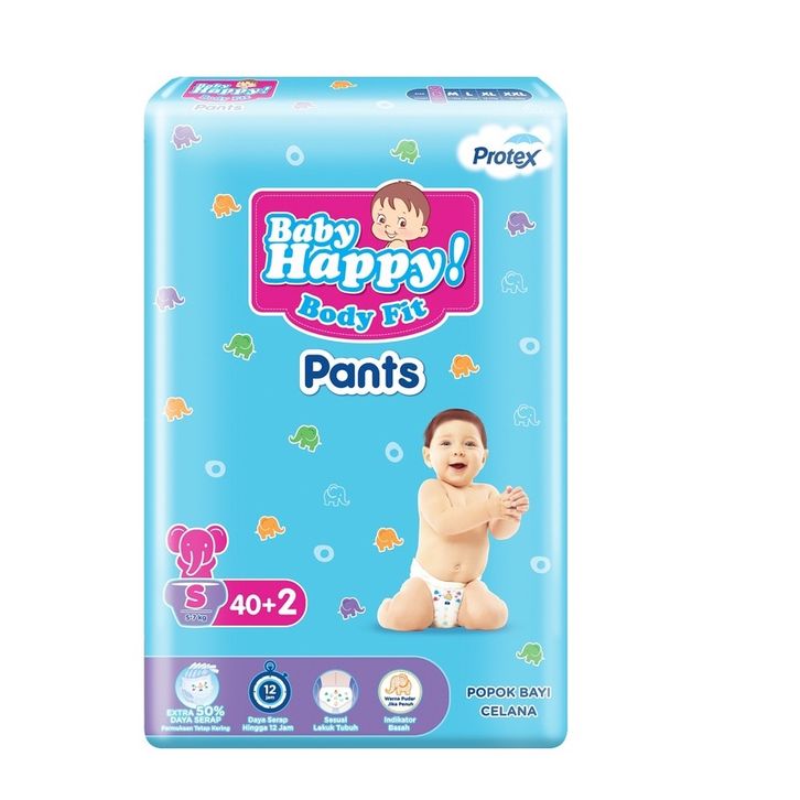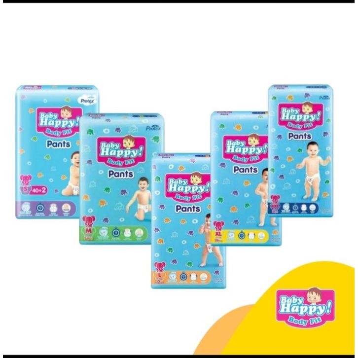 Diapers Baby Happy Pants Body Fit Popok Bayi Sekali Pakai S40+2 M34+2 L30 XL26 XXL24