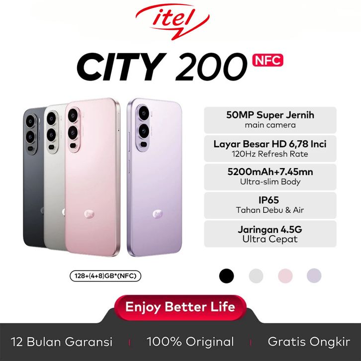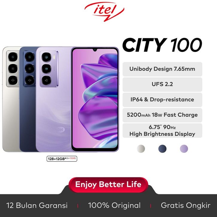 itel City200 RAM 128+12GB(4+8GB) & Itel City100 RAM 128+24GB(8+16GB) - GARANSI RESMI 1 TAHUN