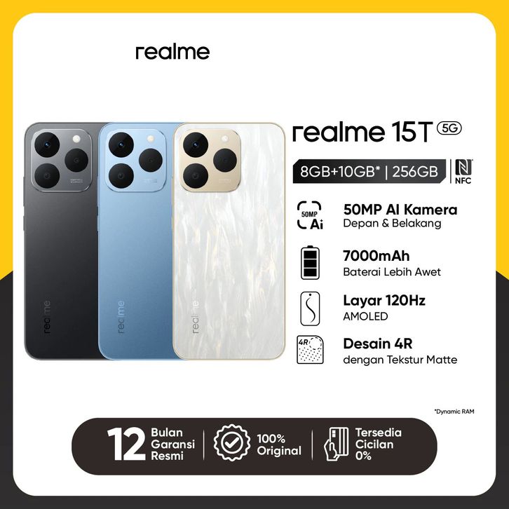realme 15T 8/256GB (50MP Front & Rear AI Camera | 7000mAh Battery | 120Hz Amoled | Textured Matte 4R Design)