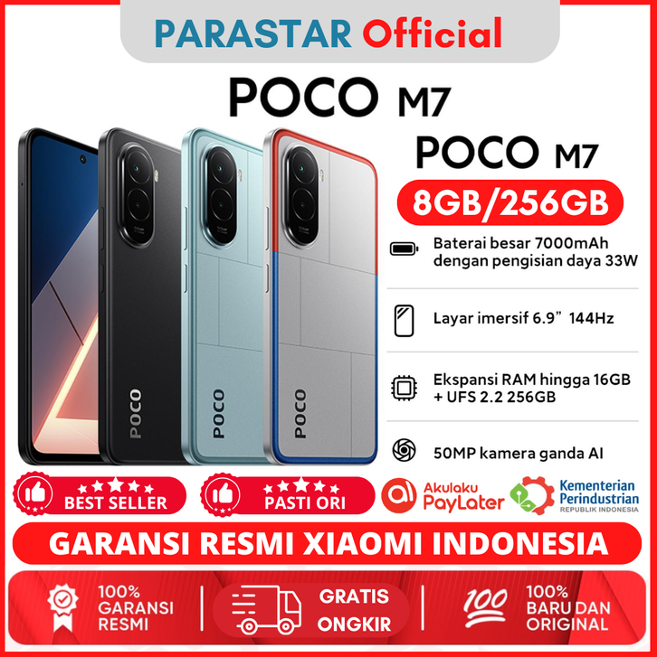 (Poco Sale) POCO M7 8/256GB - Baterai besar 7000mAh dengan pengisian daya 33W | Layar imersif 6.9" 144Hz | Ekspansi RAM