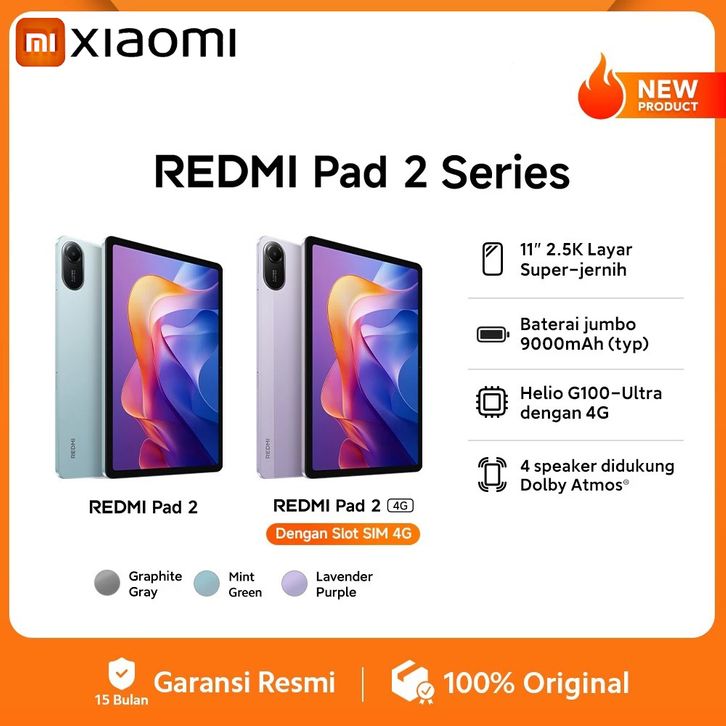 Xiaomi Redmi Pad 2 Series | Redmi Pad 2 4G (6/128G) SIM Card | Redmi Pad 2 (4/128G) Wi-Fi Only - Garansi Resmi 1 Tahun