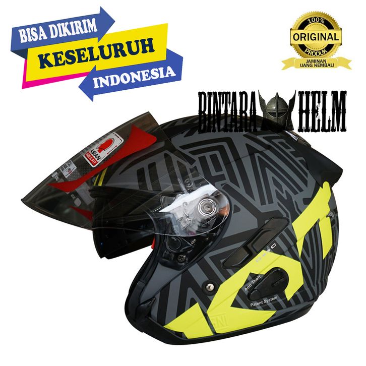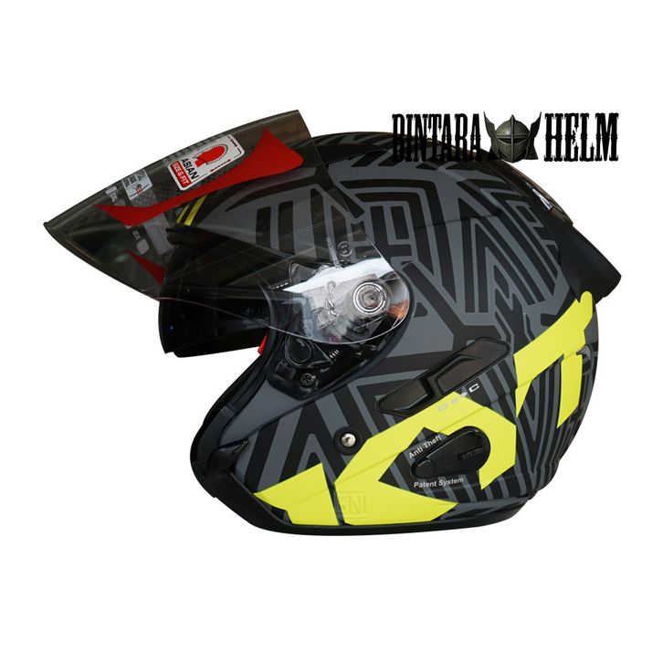 ORIGINAL HELM KYT GALAXY FLAT R NEW MOTIF NEON MATT GORILA YELLOW KYT DOUBLE VISOR HELMET TERBARU