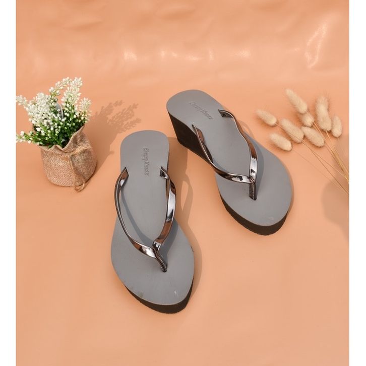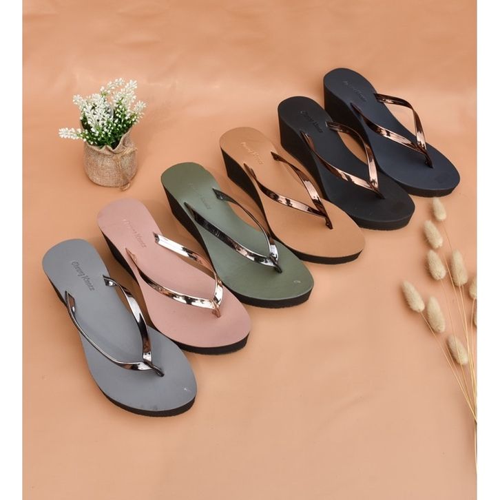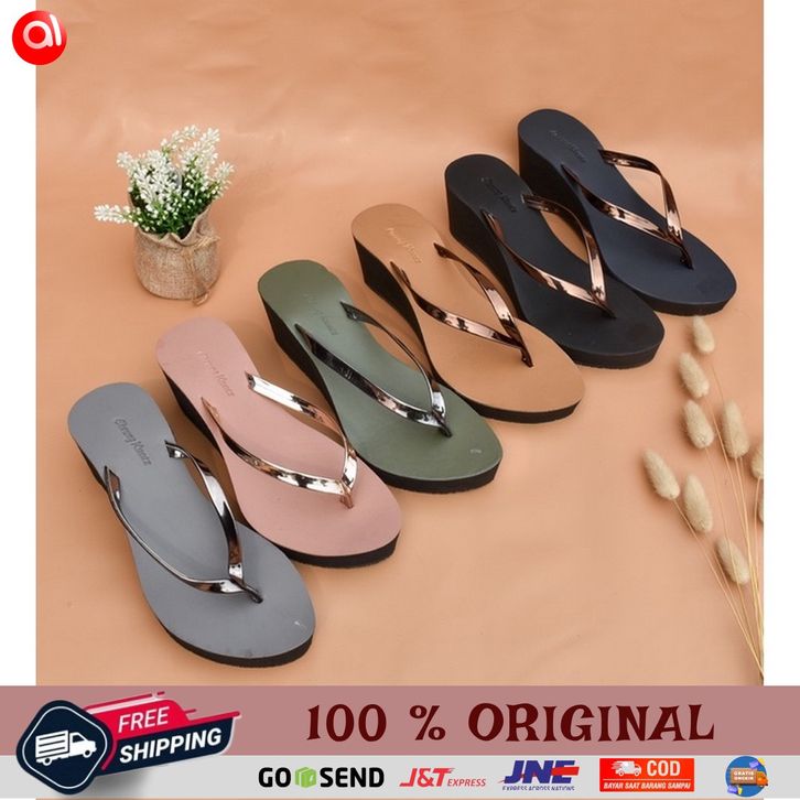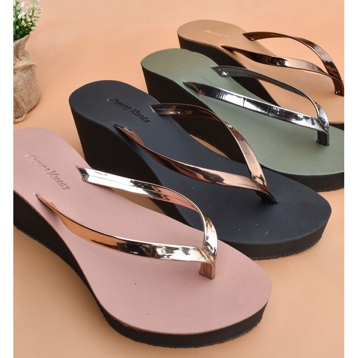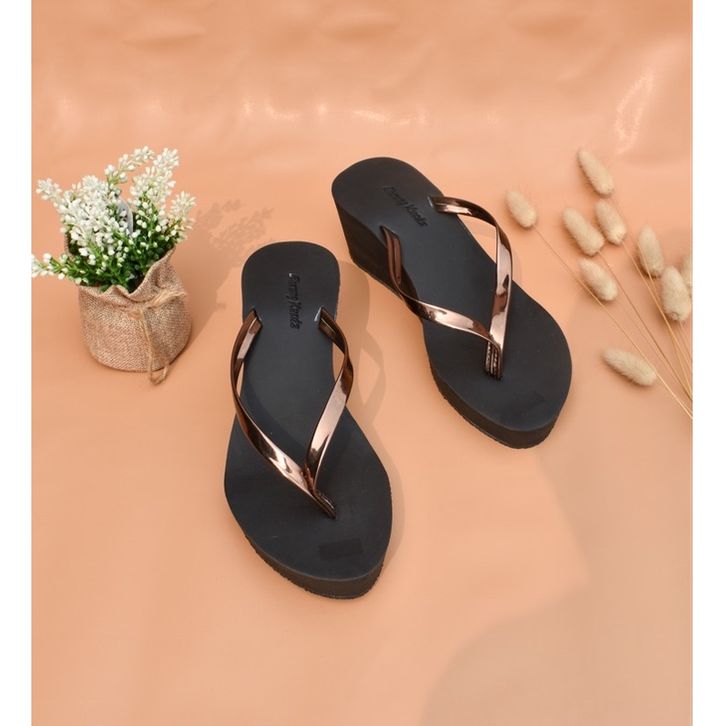 SANDAL WANITA SENDAL SPON Nyaman dipakai 03 TINGGI 7CM SOL KARET TALI TEMBAGA | SENDAL SPON TERLARIS