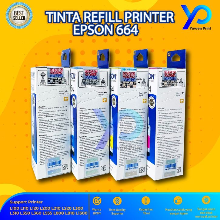 Tinta Epson 664 Refill Untuk Printer L100 L110 L120 L121 L130 L200 L210 L220 L300 L310 L350 L355 L360 L365 L380 L385 L40