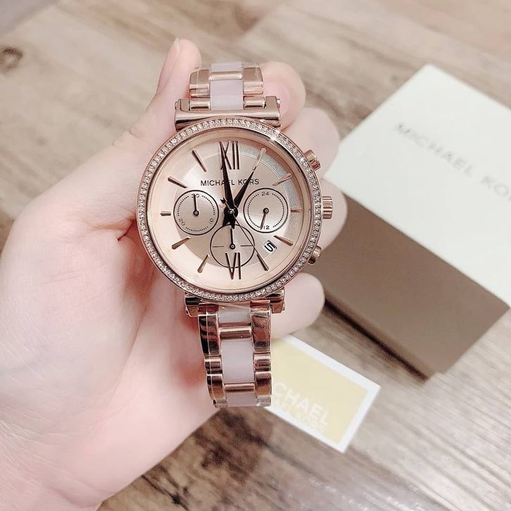 Jam Tangan Wanita Michael Kors MK6560 Sofie Chronograph Rose gold. Dial Dual Tone Stainless Steel Strap Original