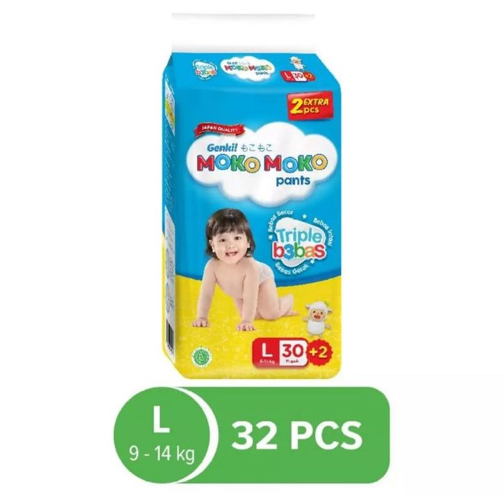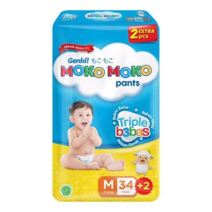 POPOK BAYI GENKI MOKO MOKO PANTS PAMPERS PEMPES M34 L30 XL26 CELANA M 34 L 30 XL 26 + 2 PCS