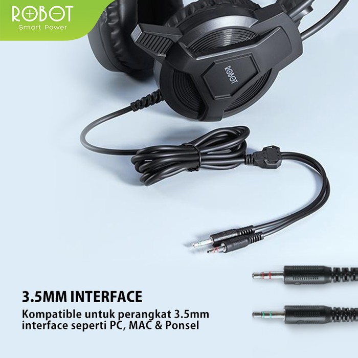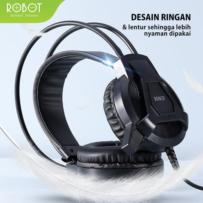 Headset Gaming ROBOT RH-P10 Jack Audio Double Padded Headband Lightweight Wired Headset Black-Garansi Resmi 1 Tahun