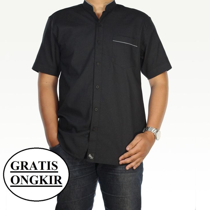 Kemeja Pendek Pria Big Size Jumbo Kerah Chiangi Cowok Kerja Kasual Hem Katun