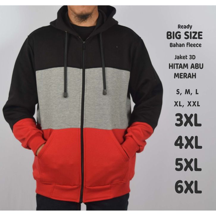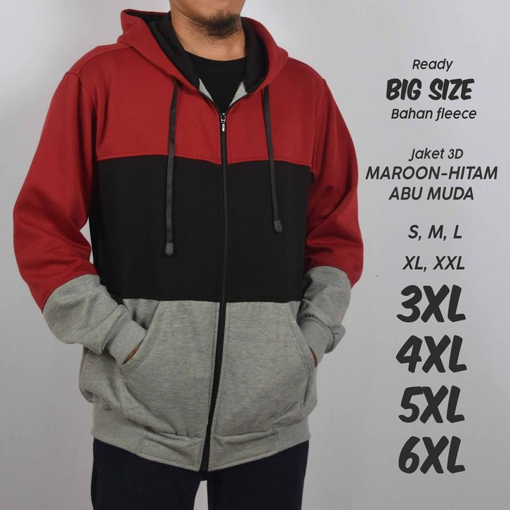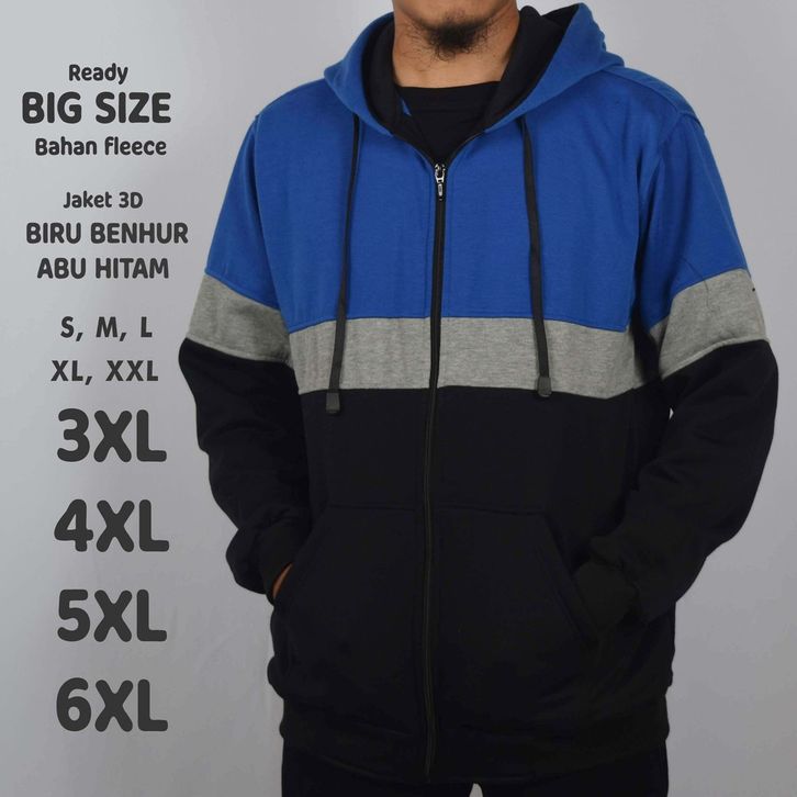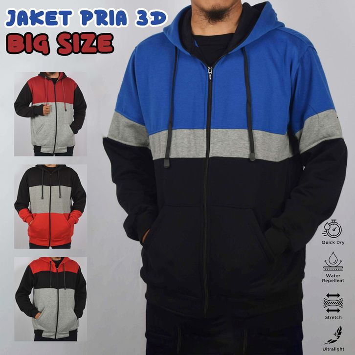 Jaket Pria 3D Hoodie Jumbo Big Size S M L XL XXL 3XL 4XL 5XL 6XL Zipper