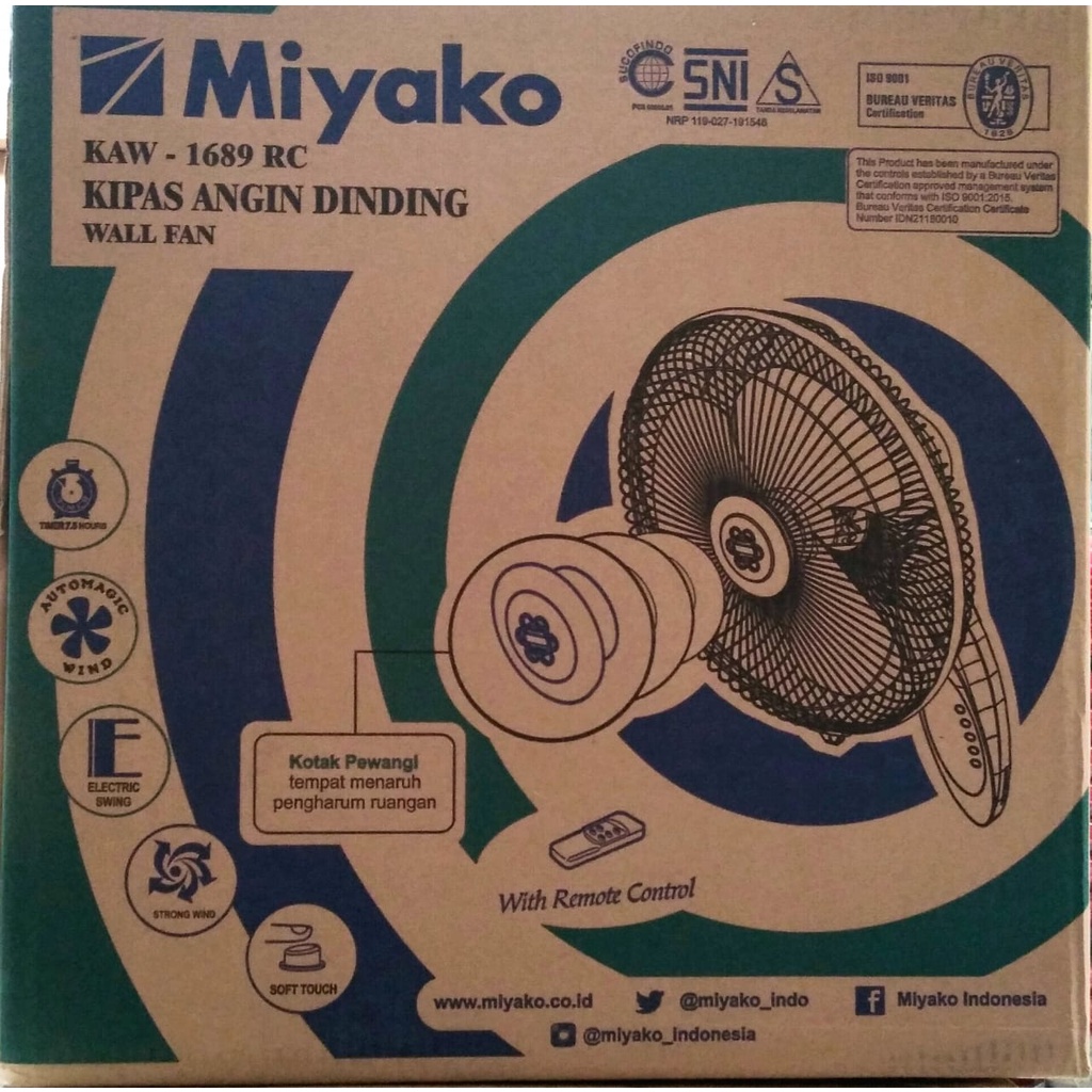 MIYAKO KIPAS ANGIN DINDING KAW-1689 RC / WALL FAN MIYAKO KAW 1689RC / KAW 1689 RC REMOTE KIPAS ANGIN DINDING