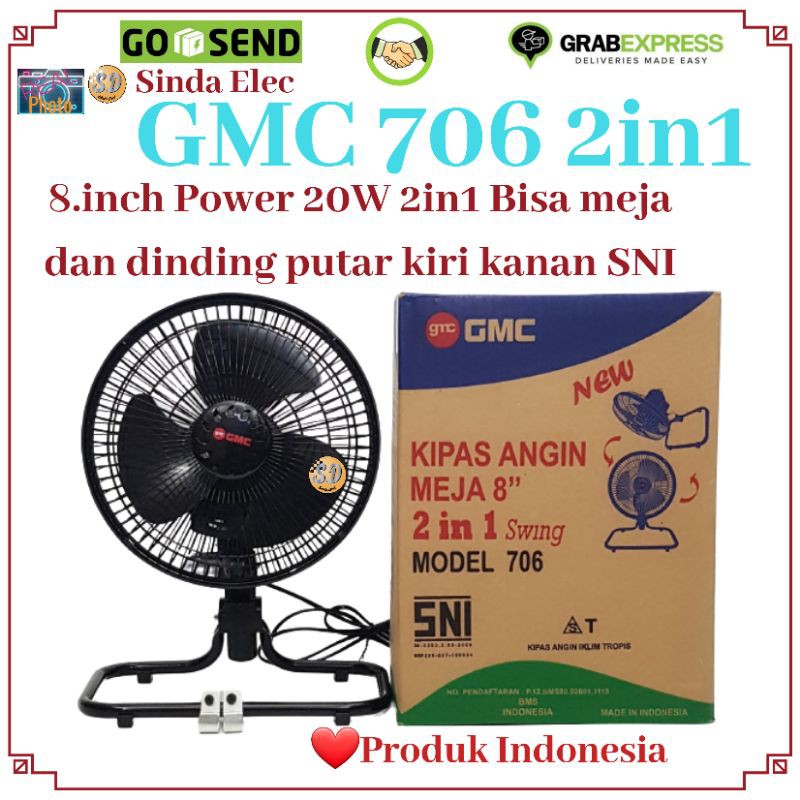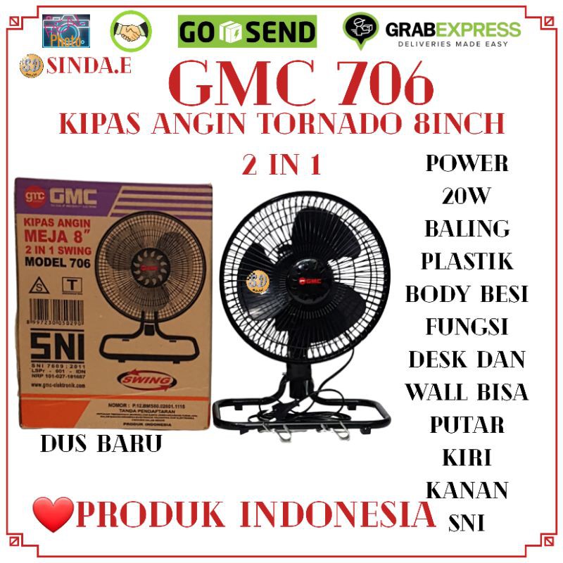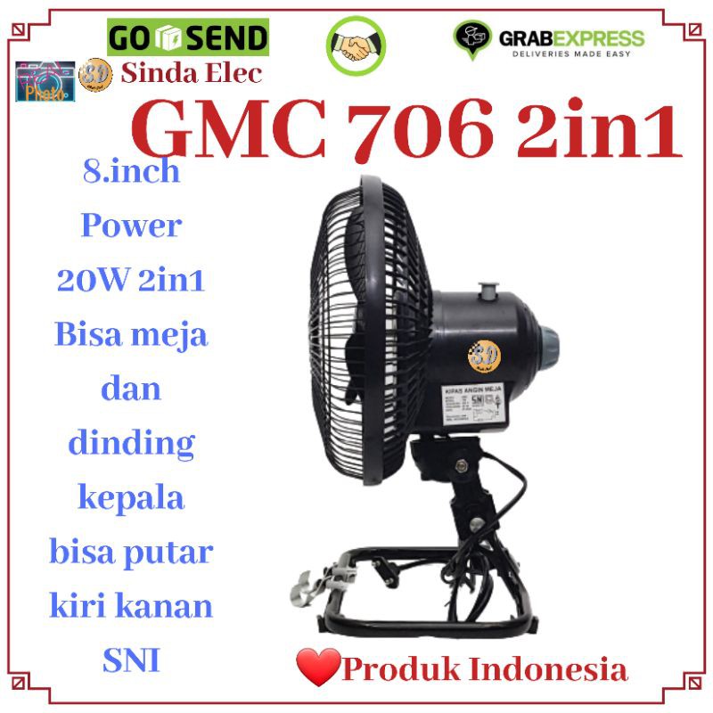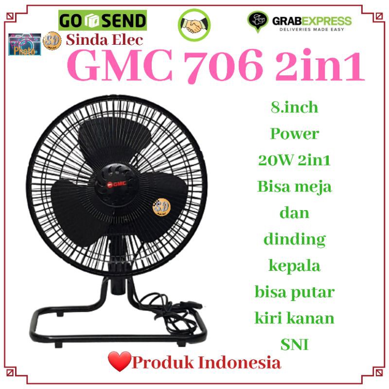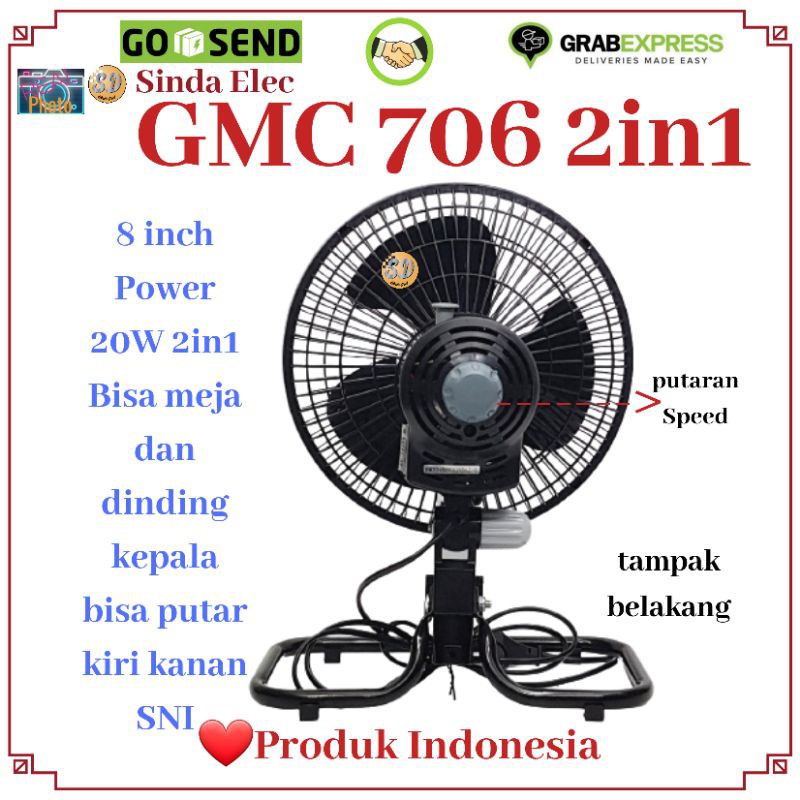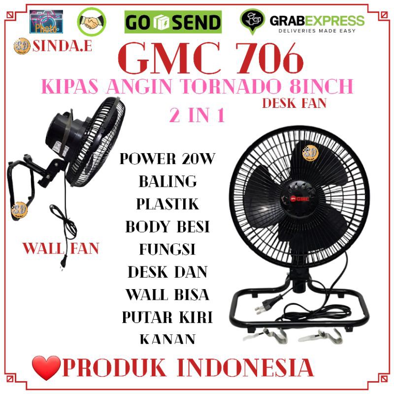 GMC 706 KIPAS ANGIN MEJA TORNADO BESI 8INCH 2IN1 MEJA DAN DINDING KIPAS ANGIN DINDING