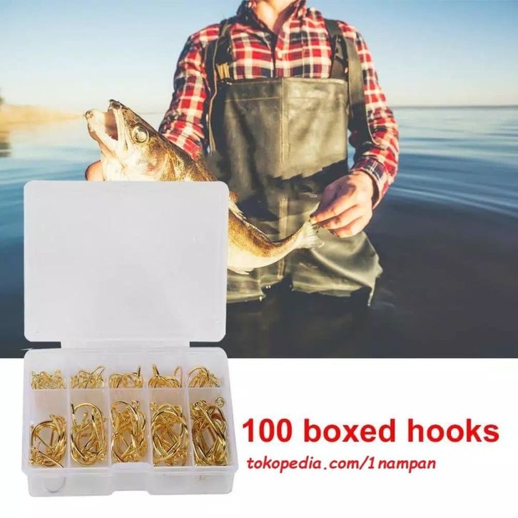 100 pcs/box high carbon steel gold mix fishing hook