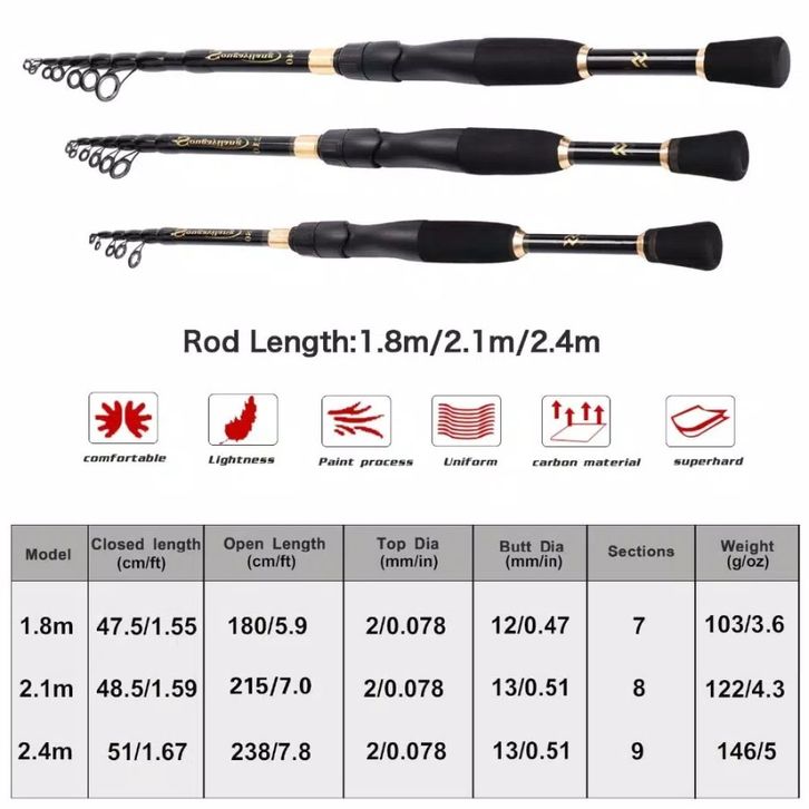 Sougayilang Joran Pancing 1,8 M Telescopic Fishing Rod Ultralight