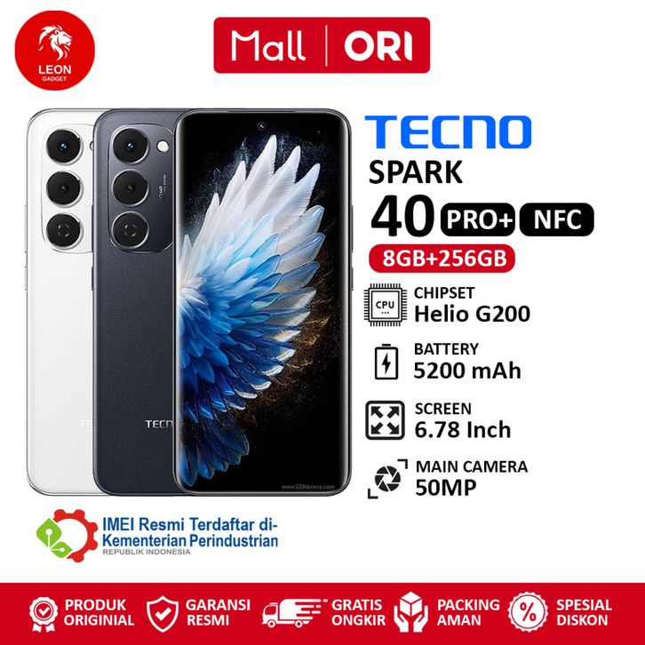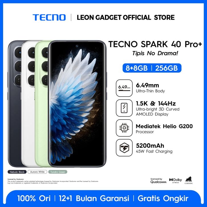 Tecno Spark 40 Pro+ Plus [8GB+256GB] - Garansi Resmi 1 Tahun.