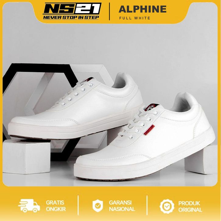 ALPHINE FULL WHITE | Saira - NS21 | Sepatu Sneakers Pria Putih Casual Premium Sintetis Lether