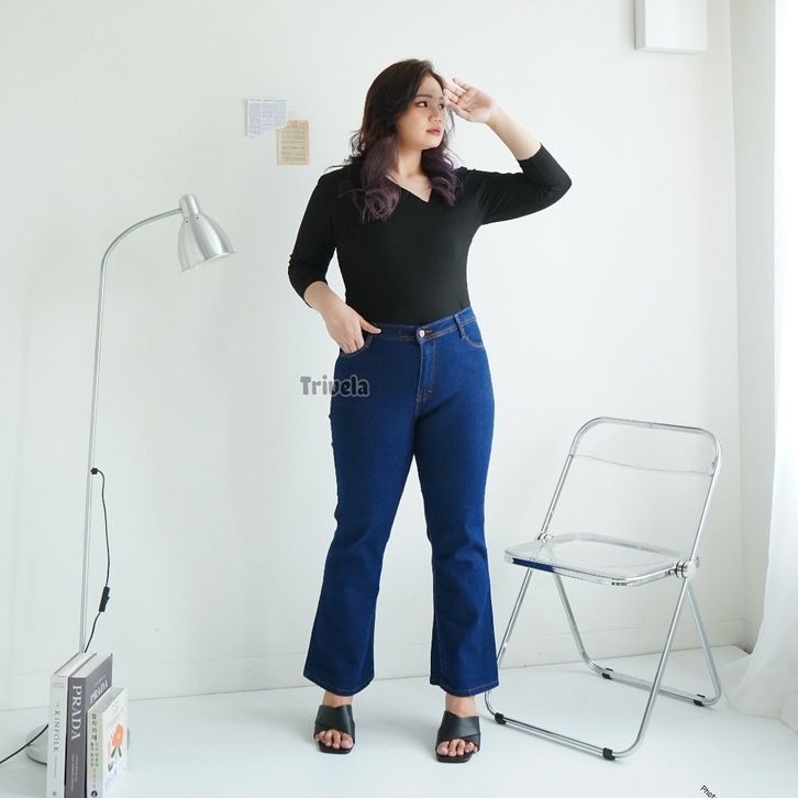 CELANA JEANS WANITA HIGH WAIST JUMBO KEKINIAN TERBARU CELANA LEVIS PENSIL STRETCH DARK BLUE HIGHWAIST