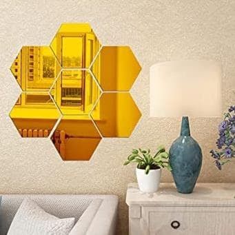Stiker Kaca Dekorasi Cermin Mirror Wallpaper SegiEnam Heksagon 7pcs S