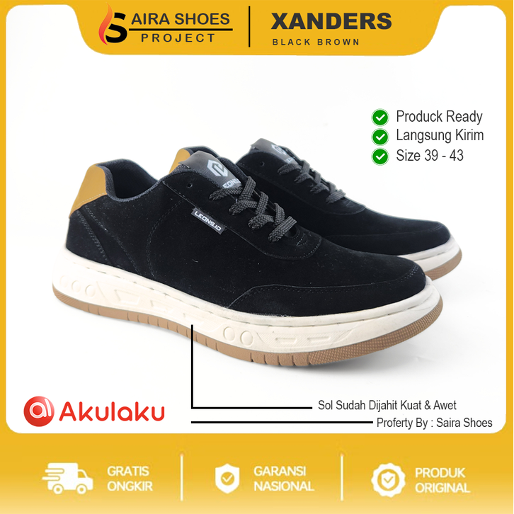 XANDERS BLACK | Sairashoes-Naz | Sepatu Sneakers Pria Hitam Casual Suede ORIGINAL