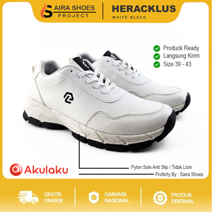 HERACLUS WHITE BLACK | Sairashoes - Leon | Sepatu Sneakers Pria Casual Sport Running Shoes ORIGINAL