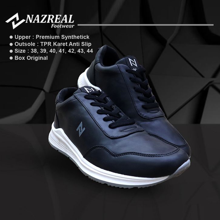 RUGIERO BLACK | Sairashoes - Naz | Sepatu Sneakers Pria Hitam Casual Sport Running Shoes ORIGINAL