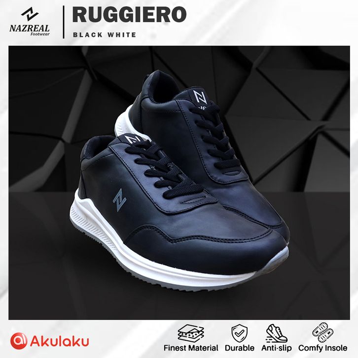 RUGIERO BLACK | Sairashoes - Naz | Sepatu Sneakers Pria Casual Sport Running Shoes ORIGINAL