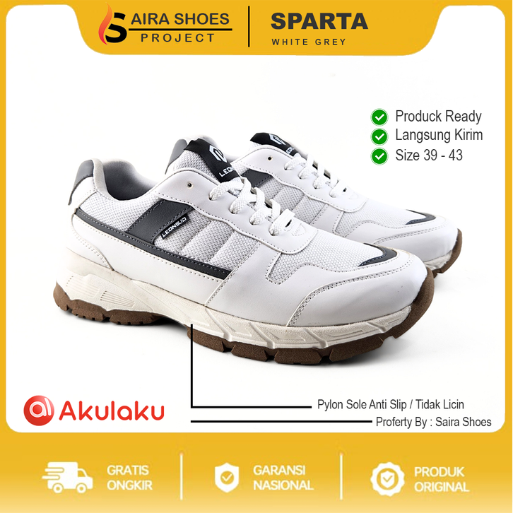 SPARTA WHITE GREY | Sairashoes - LEON | Sepatu Sneakers Pria Casual Running Shoes ORIGINAL