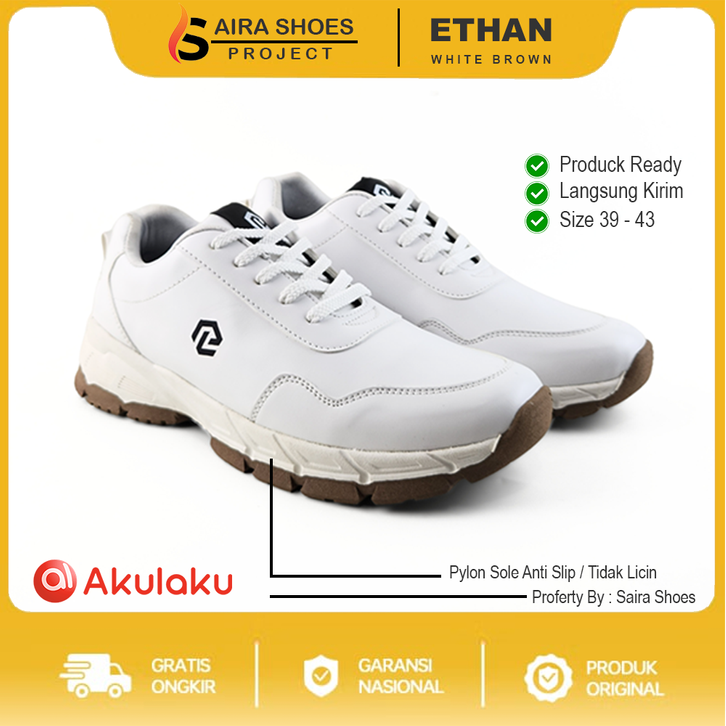 ETHAN WHITE | Sairashoes-Leon | Sepatu Sneakers Pria Putih Sport Running Shoes ORIGINAL