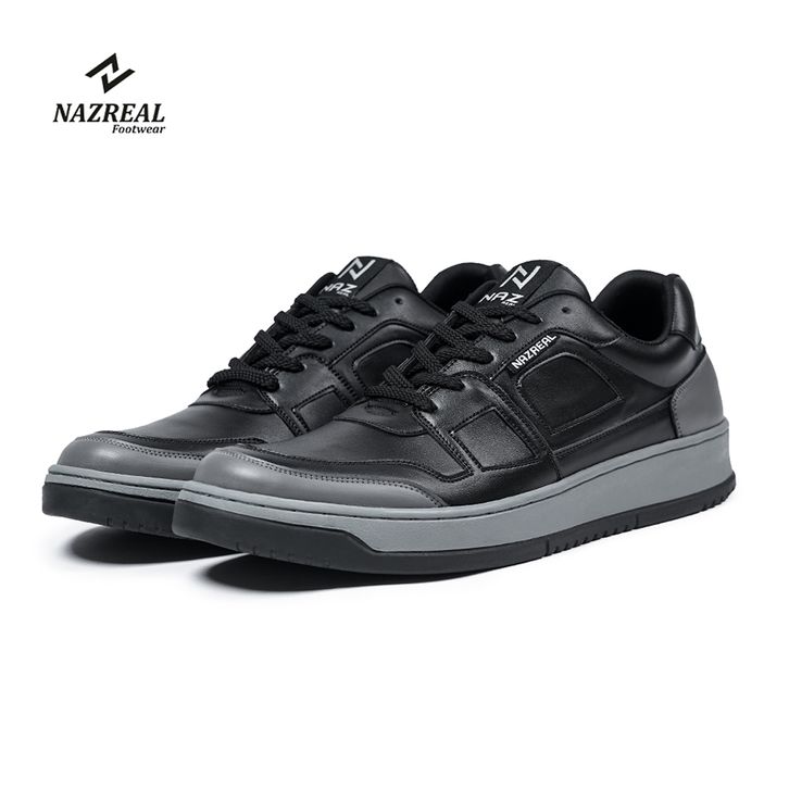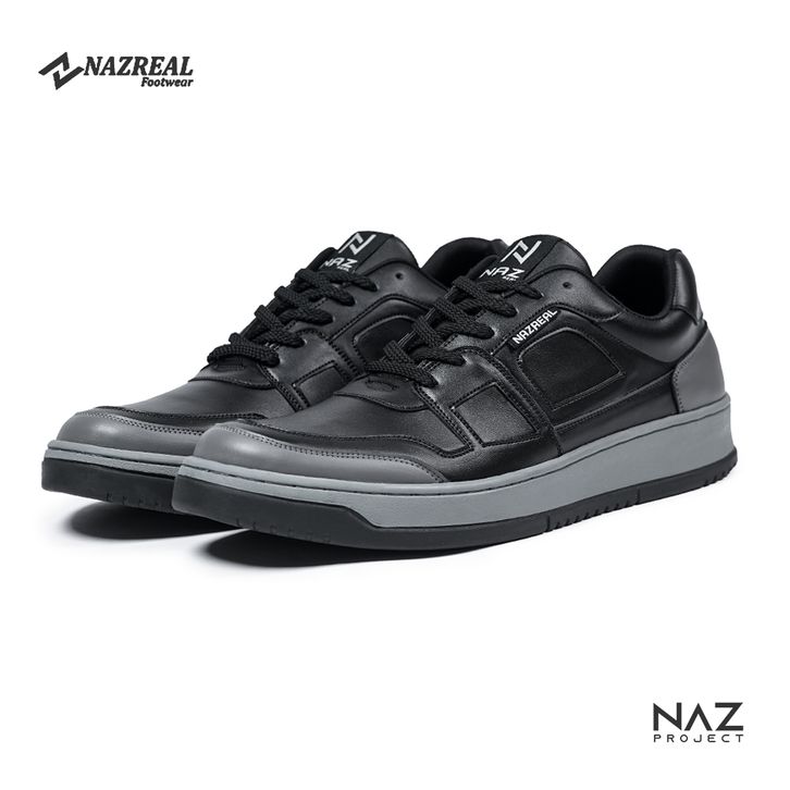 DARREN BLACK GREY | Sairashoes - Naz | Sepatu Sneakers Pria Hitam Casual Kerja Premium Kulit ORIGINAL