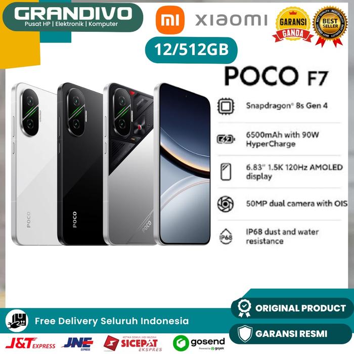 NEW HP POCO F7 (12/512GB) | Snapdragon 8s Gen 4 | 6.83" 1.5K 120Hz AMOLED | 50MP camera OIS Garansi Resmi - Grandivo