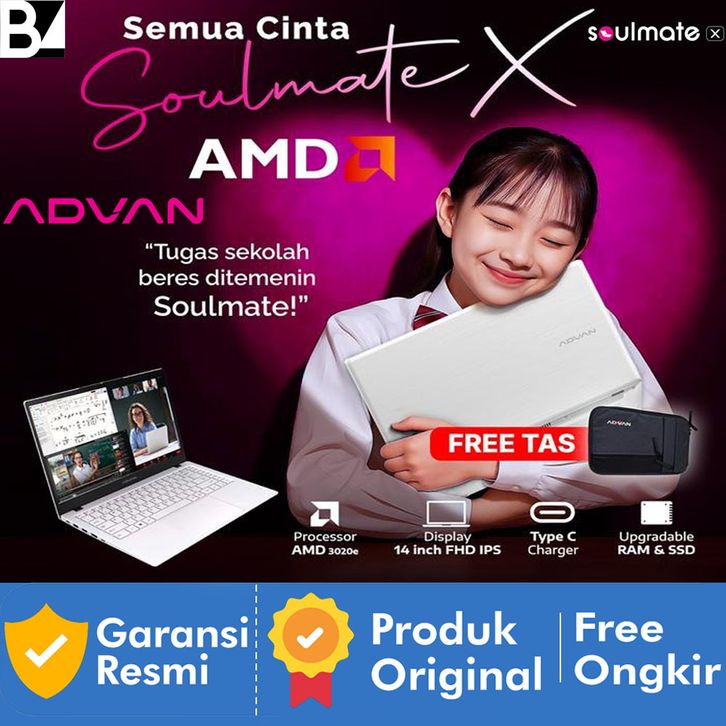 ADVAN Soulmate X 14” IPS FHD AMD 3020e 4GB/128GB Free Windows 11 Original Laptop Notebook Upgradeable