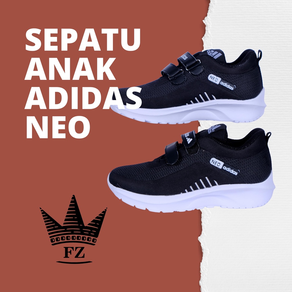 SEPATU ADIDAS NEO SEPATU ANAK SEKOLAH LAKI-LAKI PEREMPUAN CEWE COWO TK SD SIZE 28SD37 VELCRO HITAM POLOS
