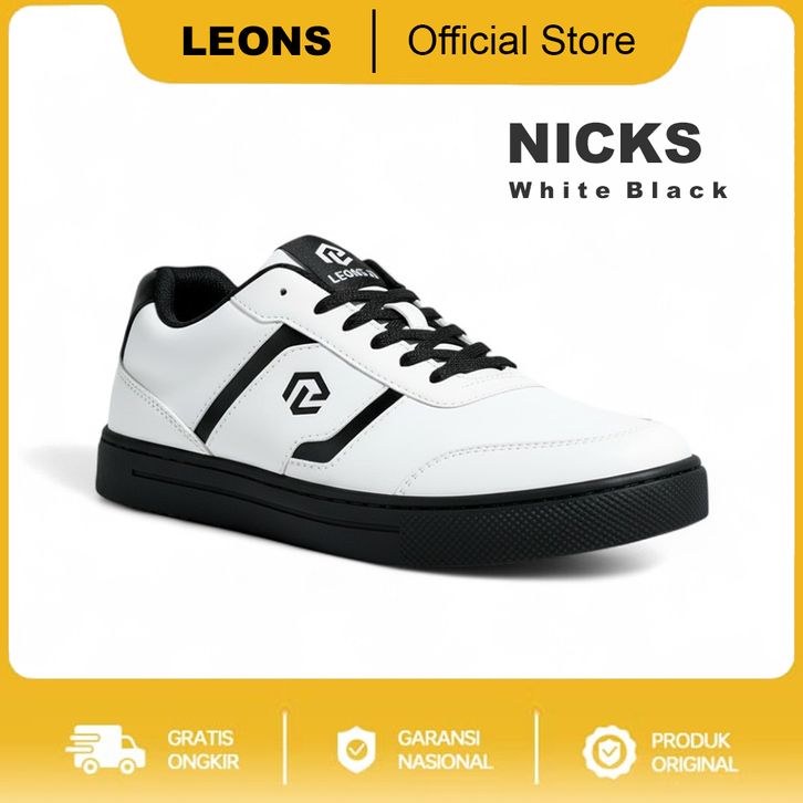NICK WHITE BLACK | Salisstore x Leons | Sepatu Sneakers Pria Putih Casual Formal ORIGINAL