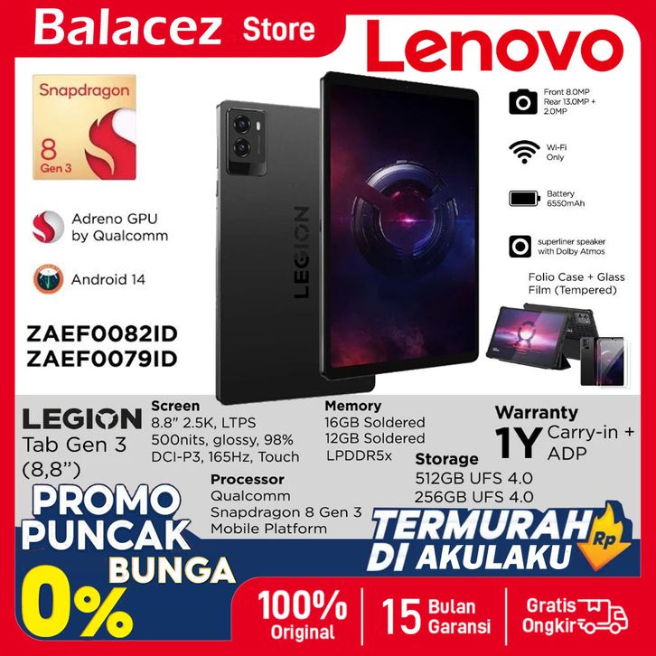 Lenovo Legion Tab 16/512GB 82ID 88ID | 79ID 87ID Snapdragon 8 Gen 3, Integrated Qualcomm Adreno GPU WiFi Only Tablet PAD